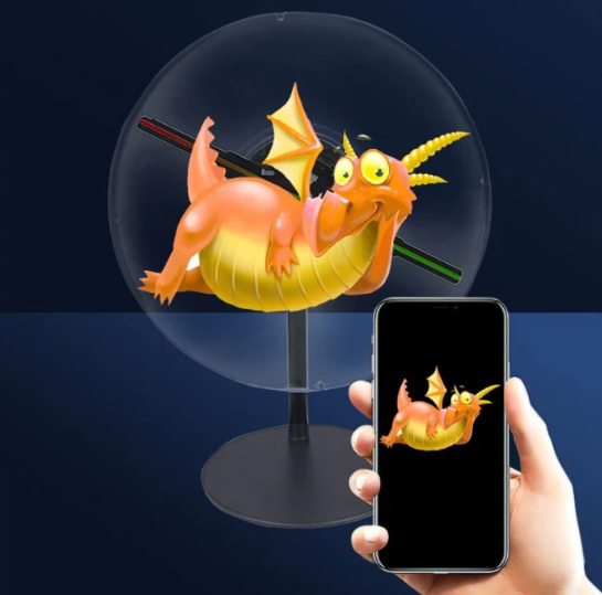 It projects floating 3D visuals and videos into the air using spinning LED blades, creating a hologram-like effect that grabs attention instantly.