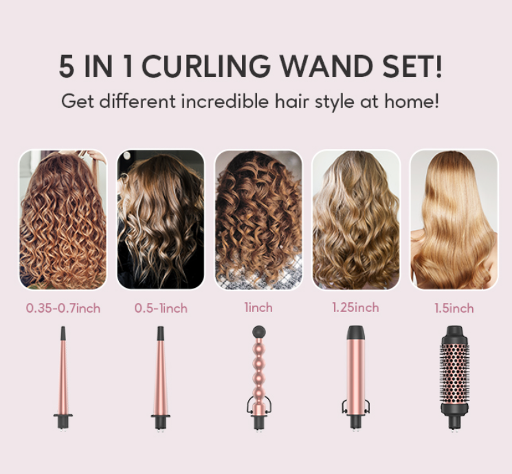 Kipozi® 5-in-1 CurlCraft Pro Set – Instant Heat Ceramic Styling Kit